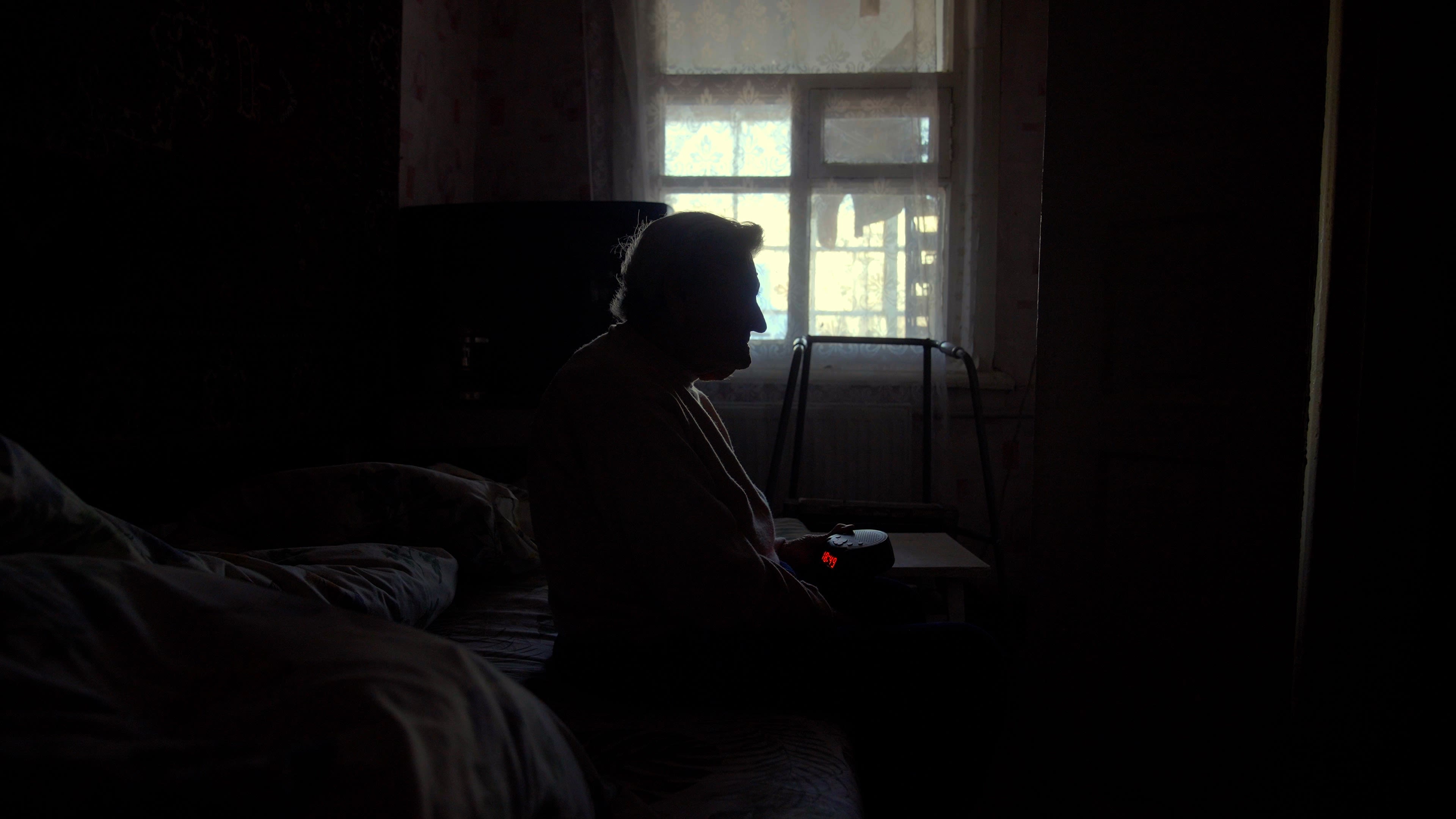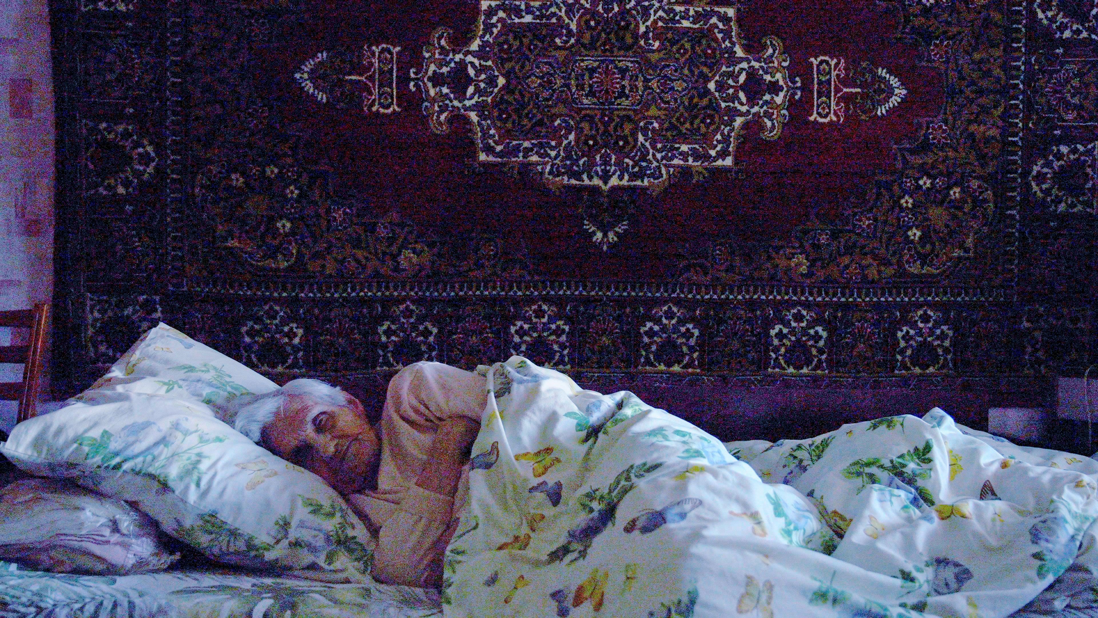 Olha descansa en su cama, de la cual no se puede parar sin la ayuda de hija.