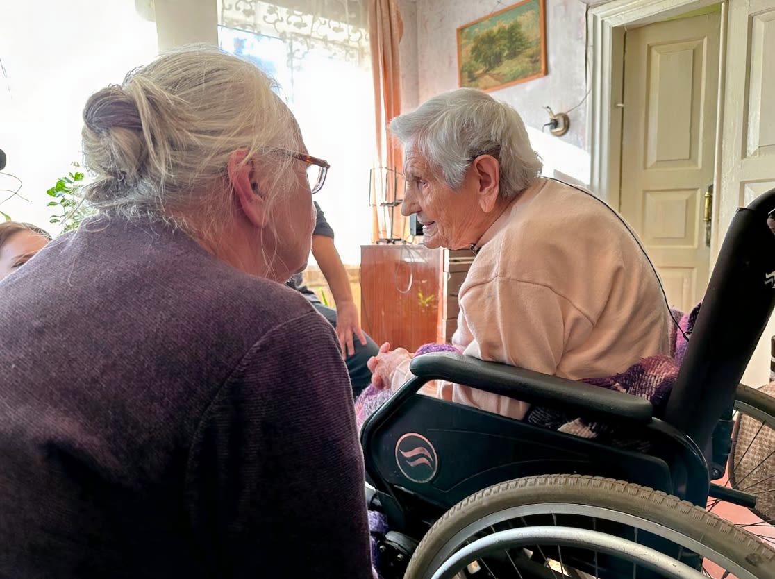 A sus 103 años, la ucraniana Olha Khmarna tiene dificultad para escuchar, así que su hija hizo posible nuestra comunicación durante la visita a su humilde casa en Izium.