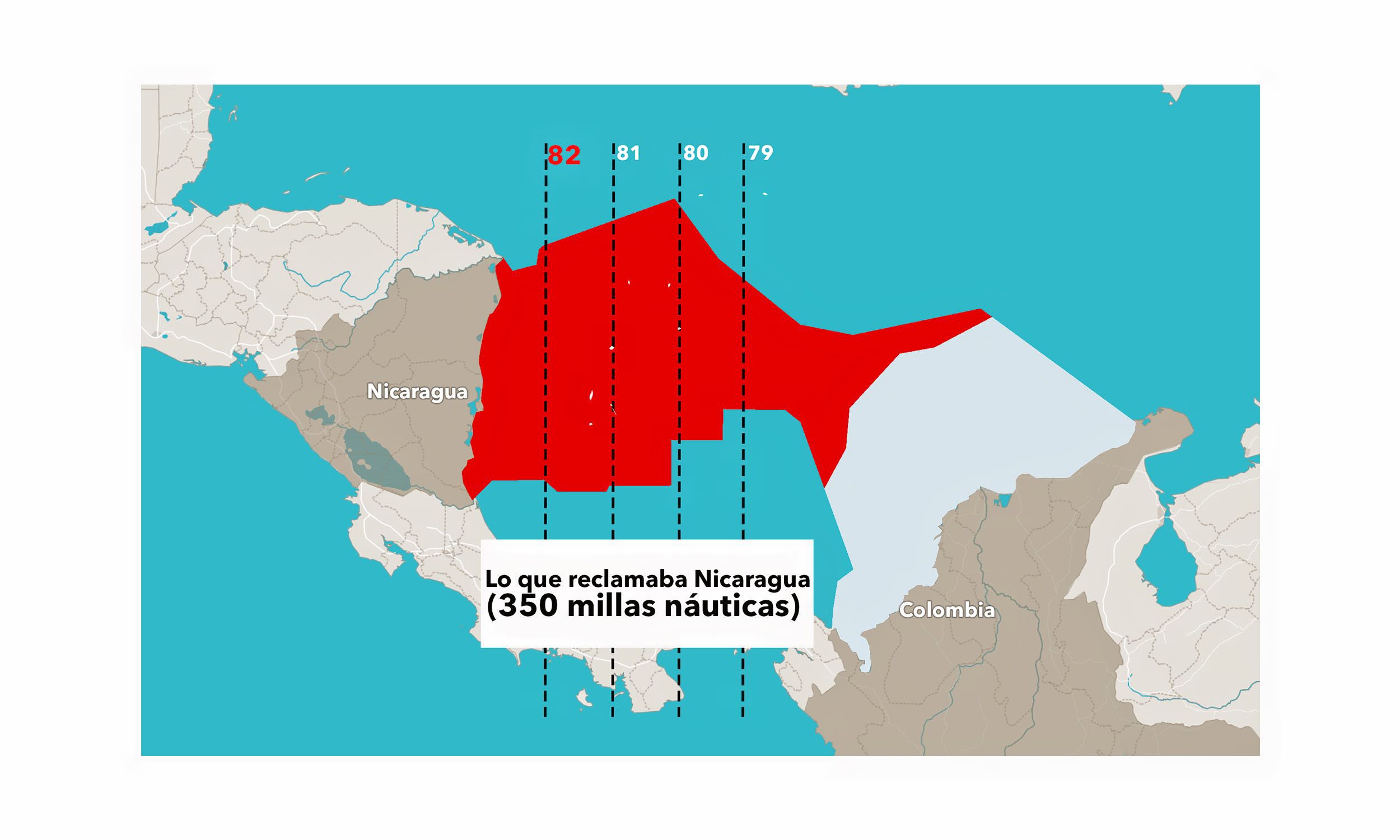 El Meridiano 82 es la frontera marítima que estableció la Corte Internacional de Justicia entre Colombia y Nicaragua en el fallo en el 2012. Antes de esto, cuentan los pescadores de San Andrés que podían navegar con normalidad en un amplio territorio marítimo que Nicaragua reclamó posteriormente. Estas aguas, según los pescadores raizales, poseen gran riqueza marina.