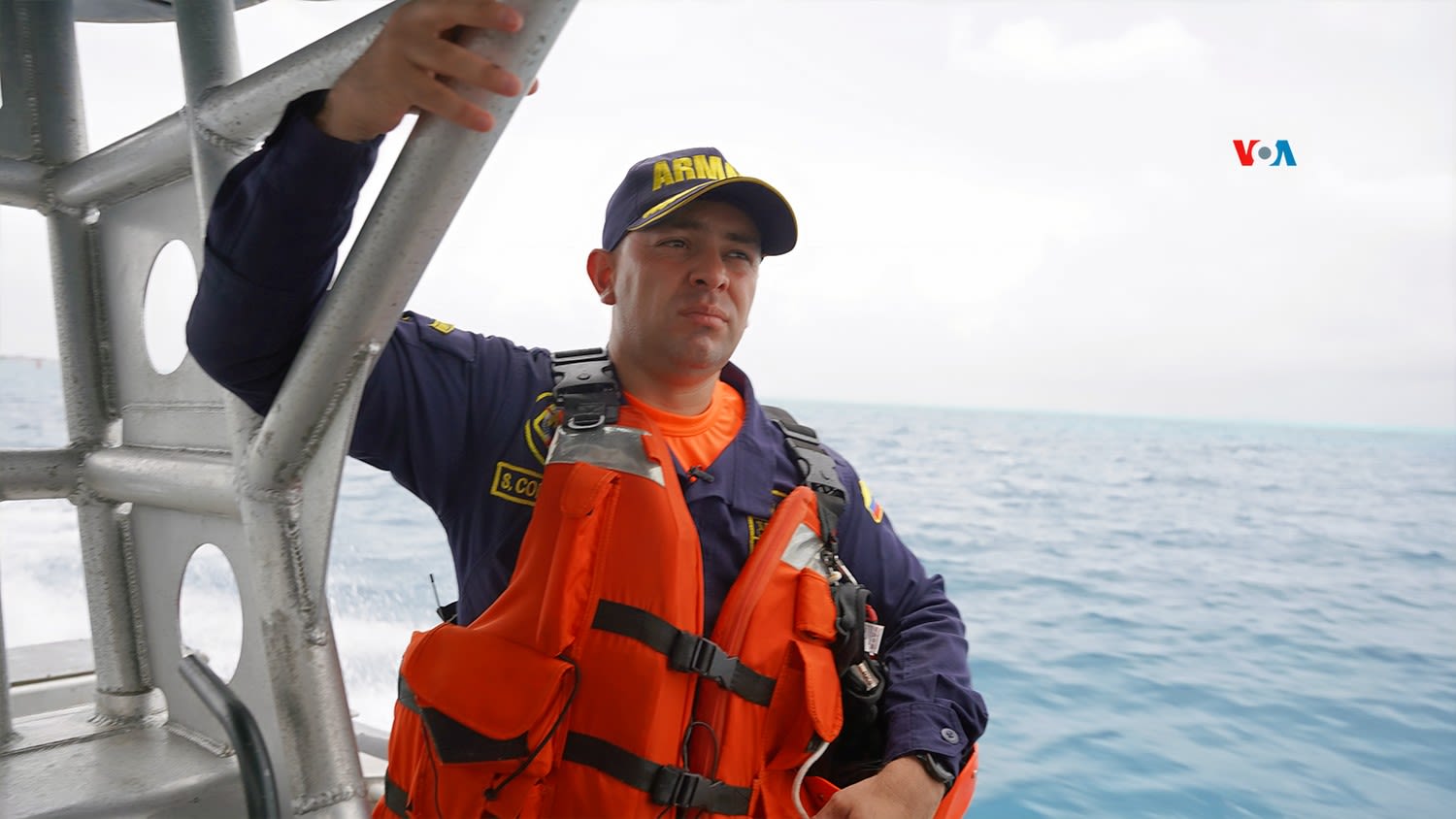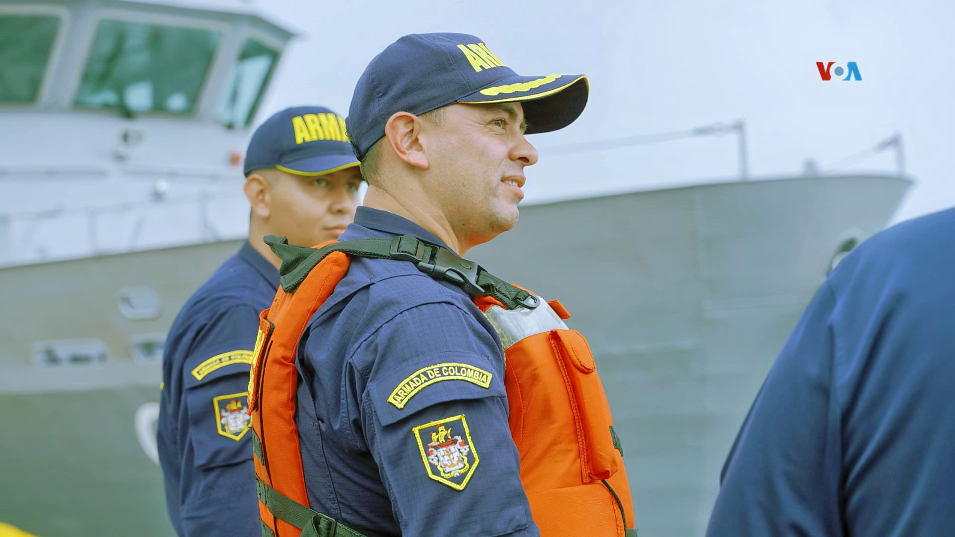 La VOA realizó un recorrido con la Fuerza Naval de Colombia varios kilómetros mar adentro. La embarcación de la Fuerza Naval que realizó el recorrido zigzagueaba con fuerza cuando comenzó a llover. “Esto es parte de los peligros”, dijo el capitán señalando la fuerza de las aguas.