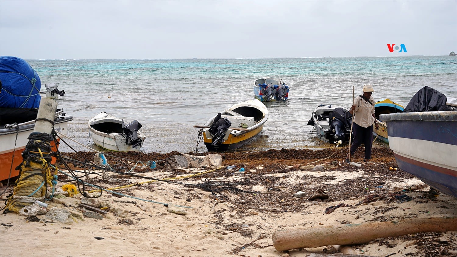 “¡No logramos pescar nada bueno!”, dijo el hombre de 55 años, mientras su bote permanece anclado a poca distancia de la costa.
