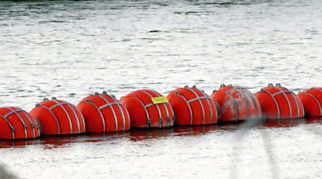 Boyas instaladas por la gobernación de Texas, que cubre 300 metros de largo en el Río Grande, a la altura de Eagle Pass. Laura Sepúlveda (Voz de América)