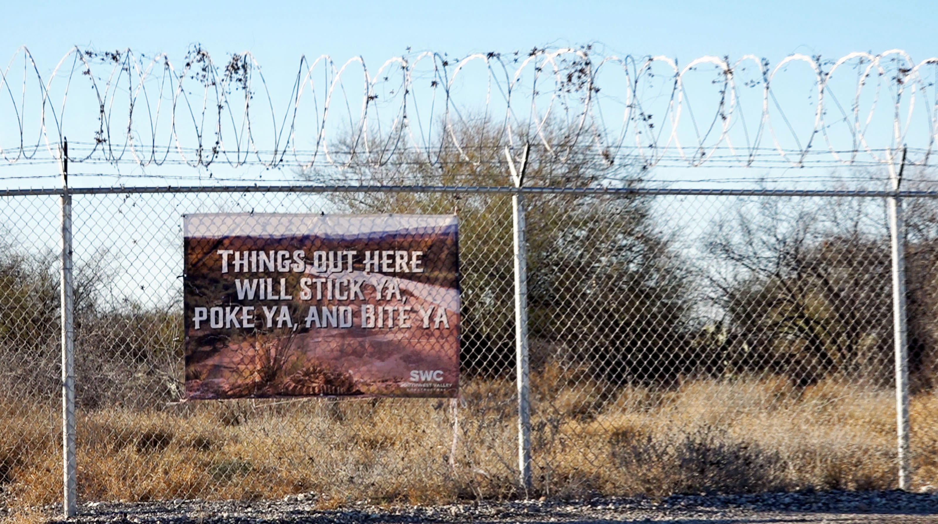 Letrero en Del Río, Texas, a pocos metros del Río Grande. Foto: Laura Sepúlveda, Voz de América.