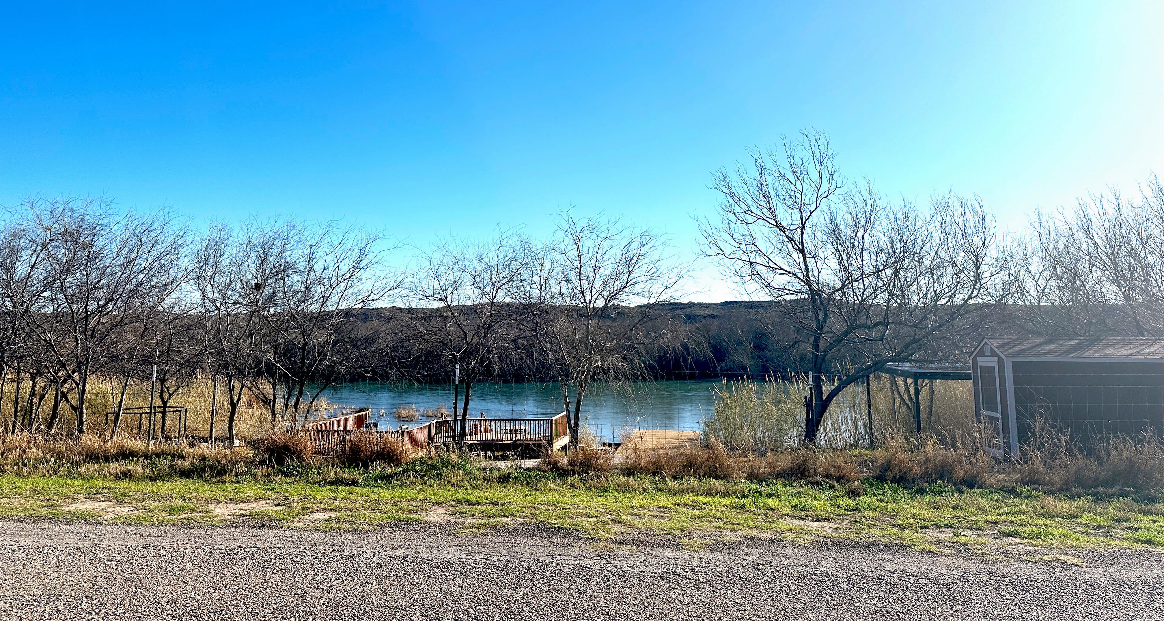 Fotografía tomada en Del Río, Texas, desde una carretera en Estados Unidos en la que se ve acceso directo y abierto al Río Grande. La zona en la que está ubicada el muelle es de propiedad privada. Foto: Laura Sepúlveda, Voz de América.
