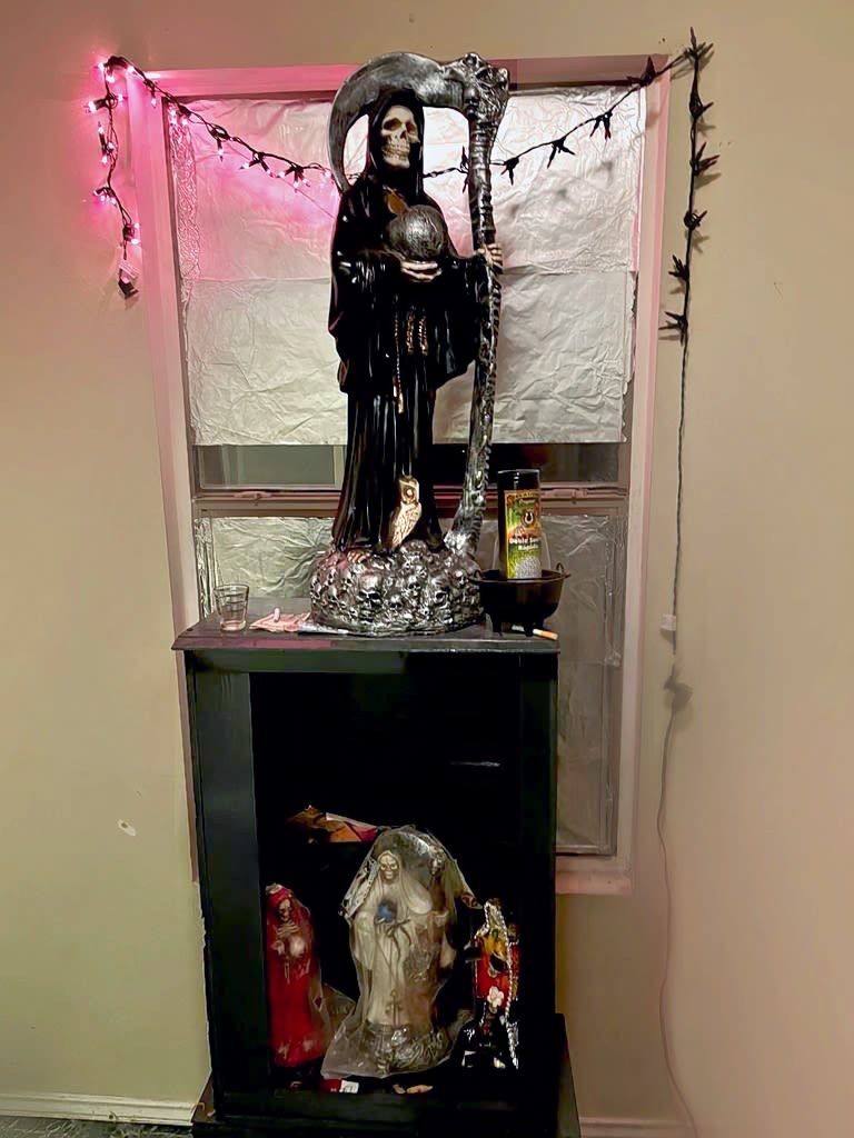 Imágenes de Nuestra Señora de la Santa Muerte son comunes en la decoración de residencias de miembros de los cárteles o en las "casas de seguridad". Cortesía.