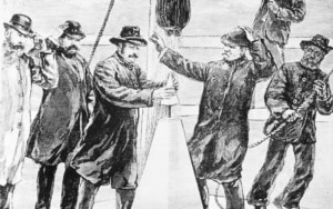 On December 6, 1884, construction is completed on the Washington Monument after workers in Washington, DC, place a nine-inch aluminum pyramid atop the white marble tower, named in honor of George Washington, the nation’s first president. (Photo: The capstone of the Washington Monument is set by workmen.) |