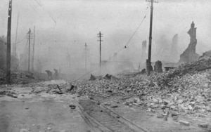 On February 7, 1904, a great fire rages across Baltimore, Maryland, destroying more than 1,500 buildings spanning 70 city blocks over 140 acres (56 hectares) — a major swath of downtown. The blaze burns for 30 hours. Firefighters are hindered by high winds, freezing temperatures and a lack of national standards in firefighting equipment. The fire galvanizes efforts to standardize firefighting equipment in the United States.
