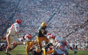 On Jan. 15, 1967, the first Super Bowl is played at the Los Angeles Coliseum. The game featured the Green Bay Packers and Kansas City Chiefs and was played before a non-sellout crowd of nearly 62,000 fans. Green Bay went on to win 35-10, and each player on the team collected a $15,000 prize. Green Bay quarterback Bart Starr was named the game’s most valuable player. |