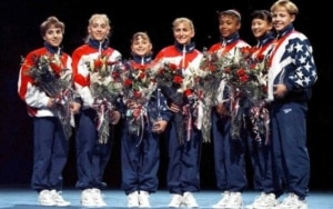 On July 23, 1996, the U.S. women’s Olympic gymnastics team wins its first-ever team gold at the Atlanta Olympics. The team, nicknamed the “Mag 7″ or the “Magnificent 7,” faced perennial contenders Russia and Romania. Those teams took silver and bronze respectively. The team included Shannon Miller, the second most decorated U.S. female gymnast, as well as individual stars Dominique Dawes and Dominique Moceanu. The group was rounded out with lesser known gymnasts, including Kerri Strug, Amy Chow, Amanda Borden, and Jaycie Phelps. The most memorable moment of their triumph was Strug nailing the vault landing despite a badly injured ankle. Her toughness clinched the gold. |